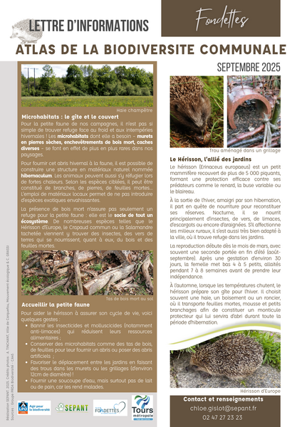 Découvrez chaque mois cette lettre d'informations sur les avancés de la biodiversité communal