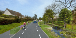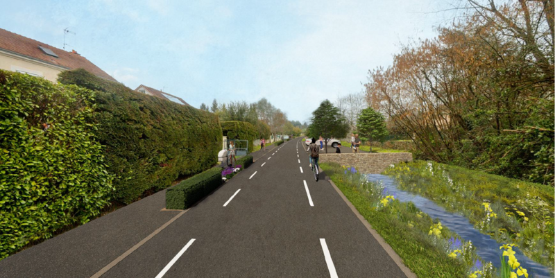 La voie sera constituée d’une chaussée à double sens d’une largeur de cinq mètres, bordée d’un trottoir et de plusieurs places de stationnement implantées en fonction de l’emprise disponible. A l’instar des aménagements de la rue Fernand Bresnier nouvellement rénovée, un dispositif chaussidou sera instauré pour le déplacement sécurisé des vélos. Classée en zone 30, la voie intégrera également des dispositifs de ralentissement contraignant les automobilistes au respect de cette limitation de vitesse. Un plateau surélevé cadrera, par ailleurs, le carrefour Louis Aragon / rue des Guillets. Le fossé à ciel ouvert sera en majorité conservé, planté et embelli, et ses ouvrages de traversée requalifiés.