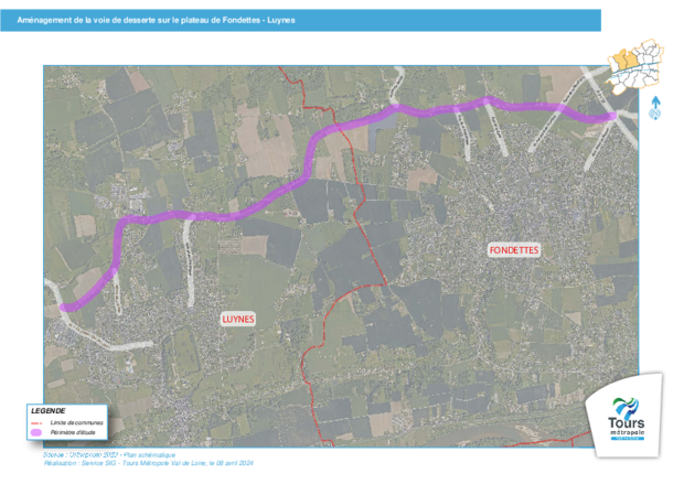Tours Métropole Val de Loire, en partenariat avec les villes de Fondettes et Luynes étudie l’aménagement d’une voie sur le plateau entre Fondettes et Luynes. Le projet a pour objectifs de faciliter et de sécuriser les déplacements routiers et modes actifs, tout en assurant une meilleure desserte du plateau entre Fondettes et Luynes.