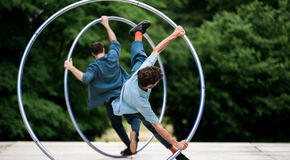 Solstice, une création musicale jouée en live. Pièce pour 2 roues Cyr et 1 violoncelle