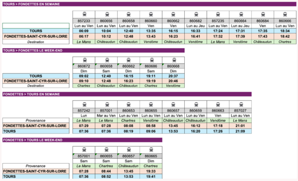 Grille Horaires prévisionnelle Tours <> Fondettes